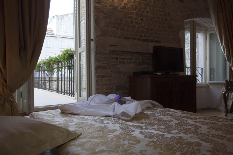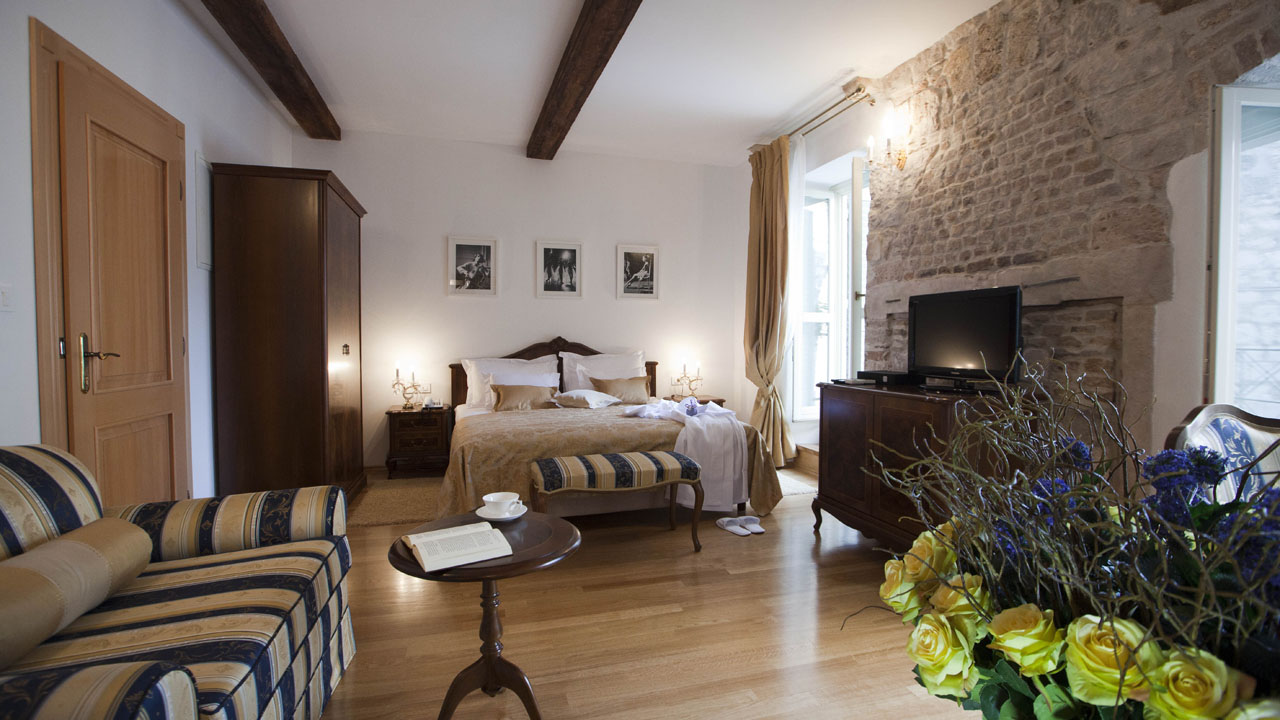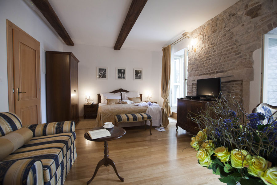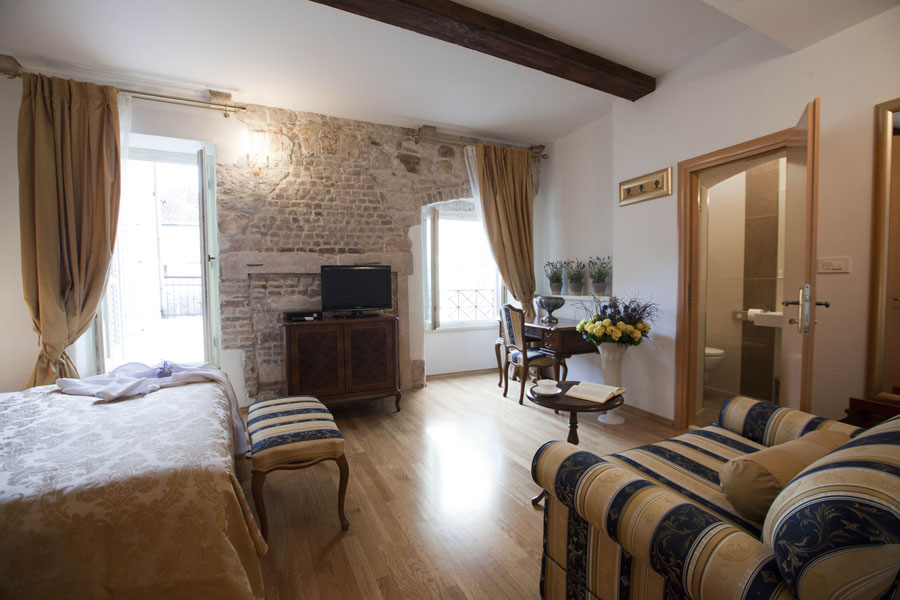 From the balcony of this lovely room you can see the marvelous bond of past and present. Life irresistible as the call of the sea, calls out from the depths of this ancient city, which sprang up within the walls of an imperial palace. This 26 square metre room has an extra large king size bed and if needed an extra bed can be added.