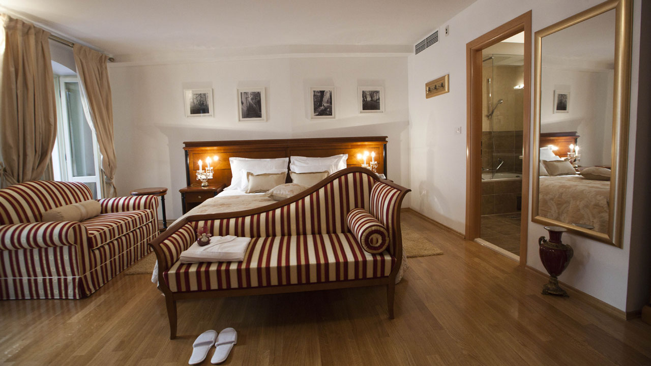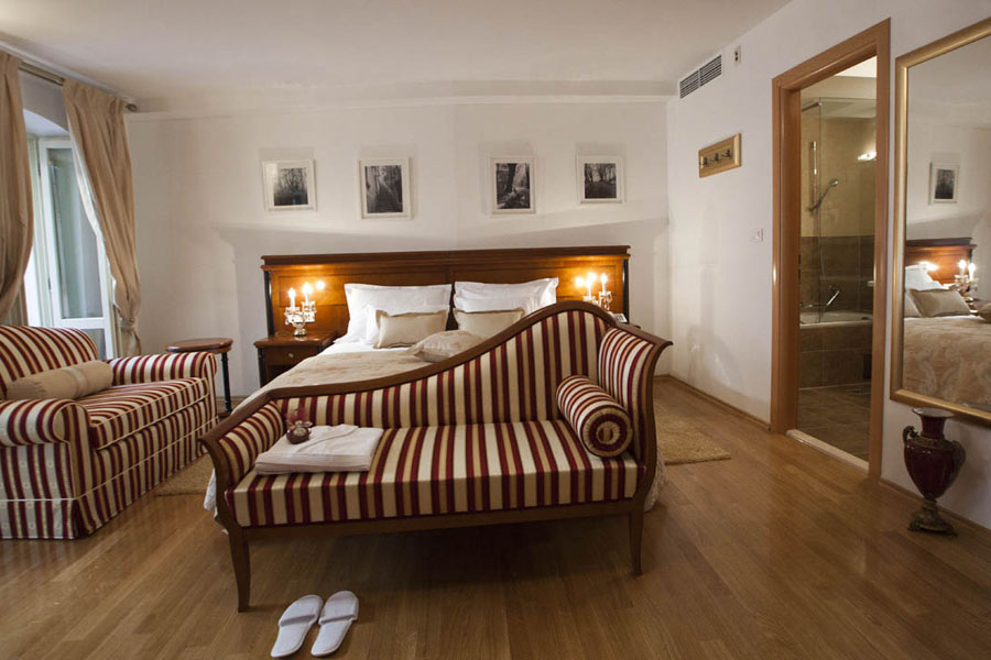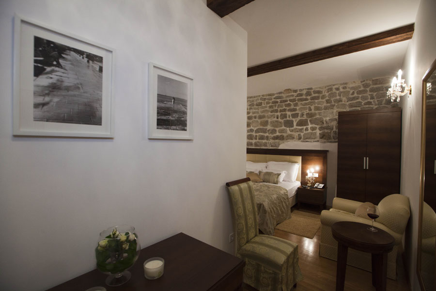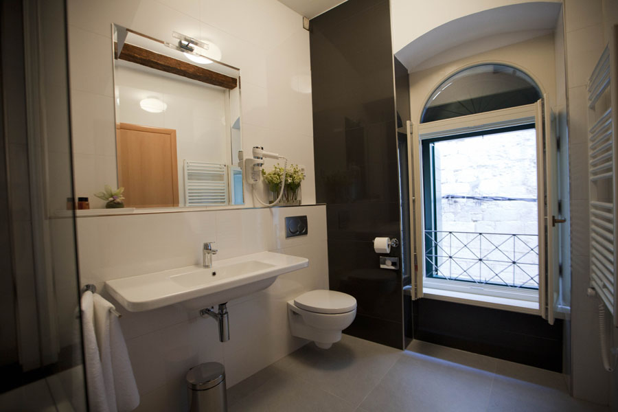 After you have seen this city is not here by chance and that it does not look the way it does by chance, relax in a room with an exit to the communal terrace or in another with the view of the narrow streets. This 26 square metre rooms have one extra large or twin beds. An extra bed can be put in one of the rooms. The large bathrooms are equipped with bathtub and shower.