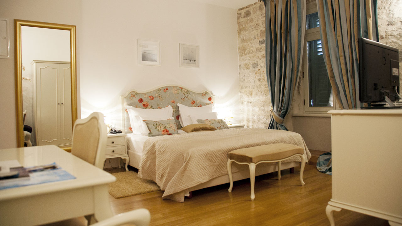 Rest in this romantic room and then head out to see a city that needs to be won over gradually and patiently – by walking, wishing and living without hurry or misapprehension. In its 26 square metres, this room has one extra large bed and a large bathroom with bathtub and shower.